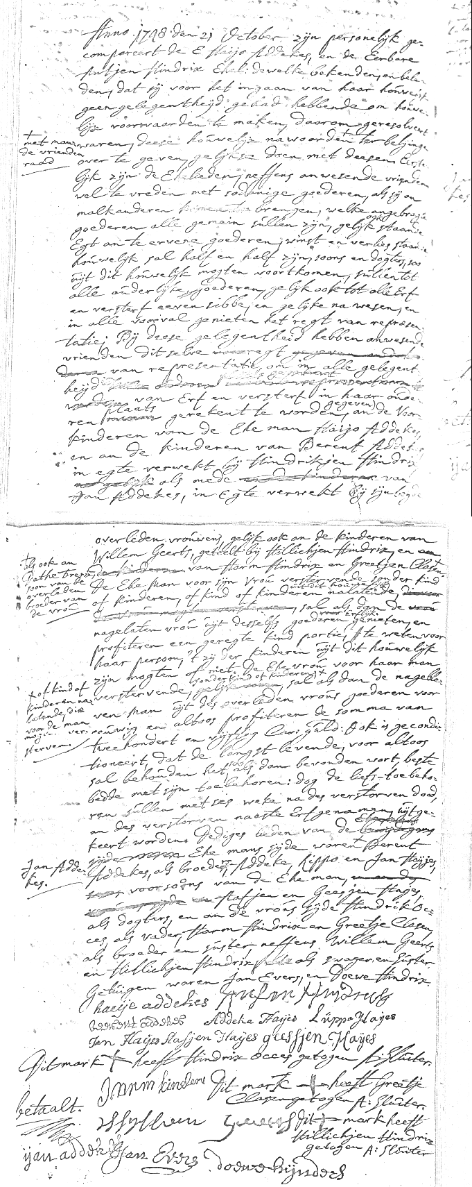 Het huwelijkscontract van Haijo Addekes en Antjen Hindrix is van groot belang voor de hele familie. Verreweg de meeste familieleden stammen uit deze verbintenis.